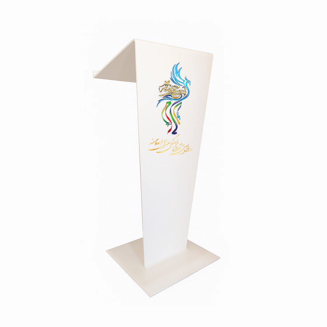 تریبون خم سفید پلکسی گلاس؛ ترکیبی از سادگی مدرن، طراحی حرفهای و امکان چاپ اختصاصی
