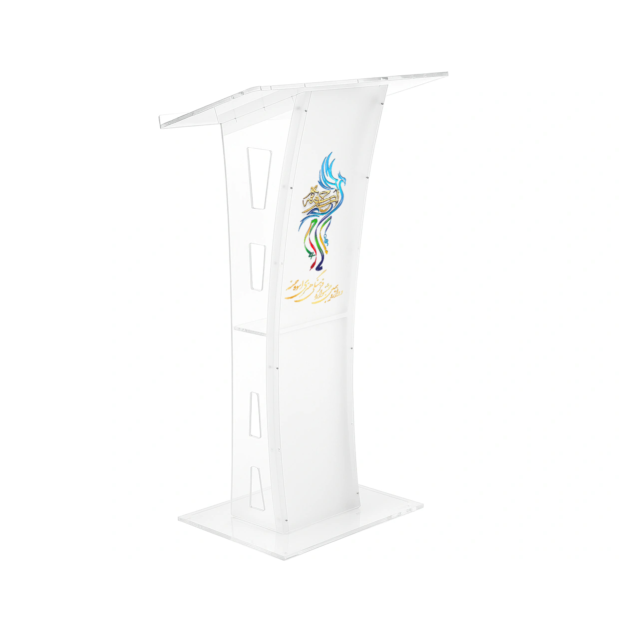 تریبون پلکسی شفاف انتخابی ایدهآل برای سالنهای همایش، کنفرانسها، نشستهای خبری، سخنرانی رسمی مدیران، نمایشگاهها، مدارس، دانشگاهها و رویدادهای برندینگ سازمانی است. طراحی تمامشفاف آن باعث میشود با هر نوع دکور و پسزمینه هماهنگ شده و حس مدرن را به صحنه ببخشد. اگر بهدنبال تریبون آماده با ظاهری شفاف و برند محور، تریبون اختصاصی فوری برای مراسم نزدیک و محصولی با تحویل اکسپرس ۴۸ ساعته هستید، این مدل یکی از حرفهایترین انتخابهای شما محسوب میشود.