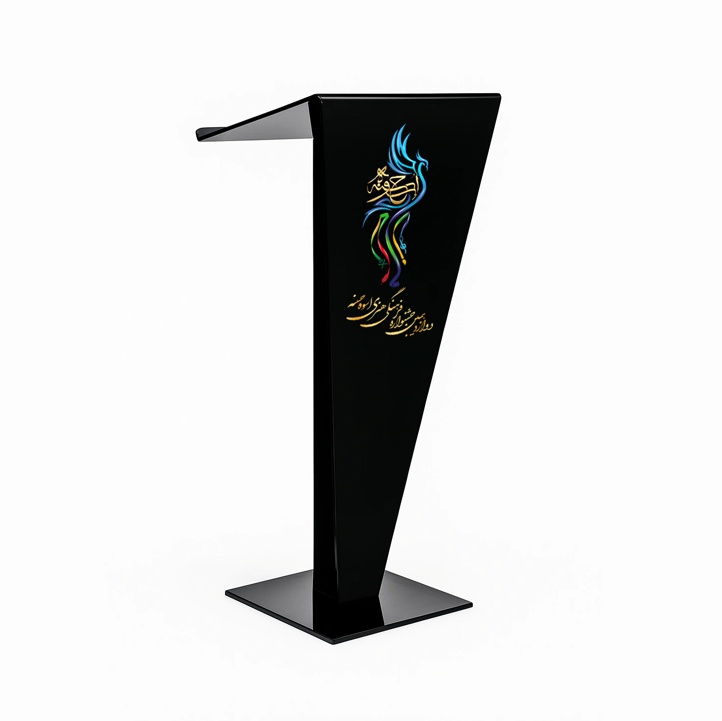 تریبون خم مشکی پلکسی گلاس؛ انتخابی لوکس، رسمی و قدرتمند برای سخنرانیهای حرفهای با تحویل سریع