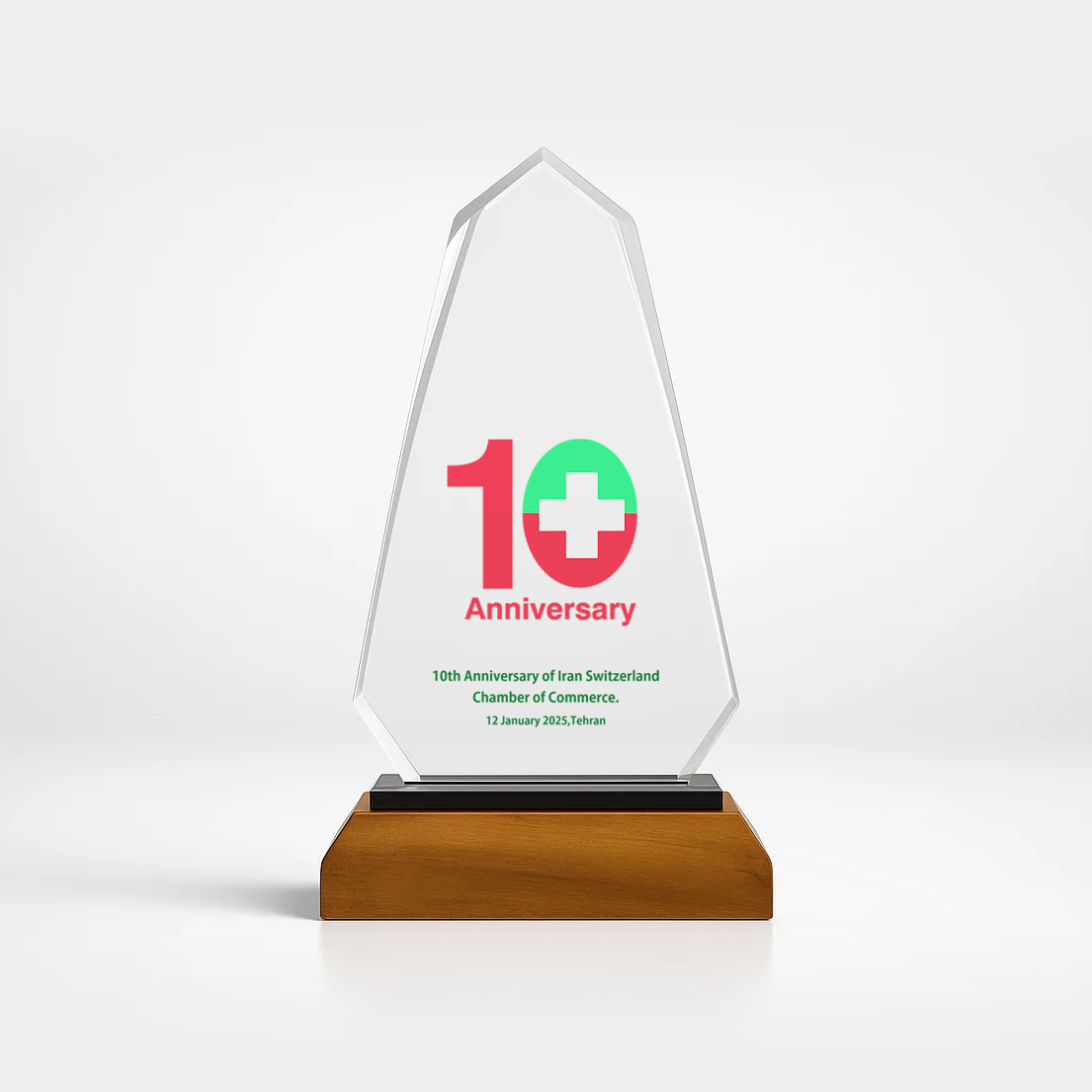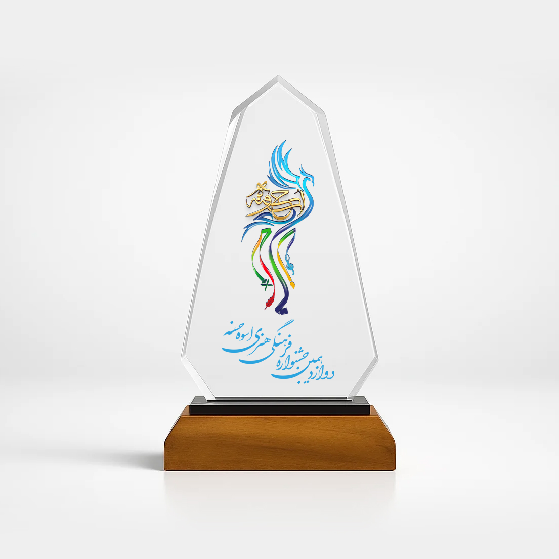 تندیس الماس از آکریلیک شفاف با ضخامت بالا تولید شده که درخشش ظاهری آن یادآور تراش الماس است. لبهها با دقت لیزر برش خورده و تمام لبه ها پولیش و صیقل شدهاند تا شکست نور در زاویههای برش، جلوهای نورگیر و لوکس به بدنه بدهد. پایه از چوب طبیعی ساخته میشود و رنگ آن با پوشش ضدخش تثبیت شده تا در کنار آکریلیک شفاف، تضاد گرم و چشمنواز ایجاد کند. در بخش گرافیکی نیز از چاپ فلتبد UV برای درج لوگو، آرم یا متن اختصاصی استفاده میشود که کیفیت چاپ را ماندگار، دقیق و مقاوم در برابر نور و سایش نگه میدارد.