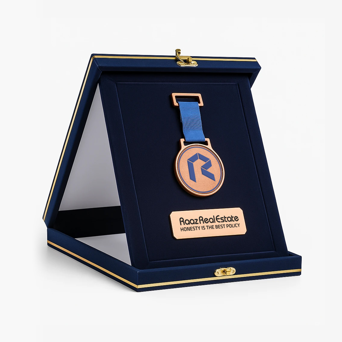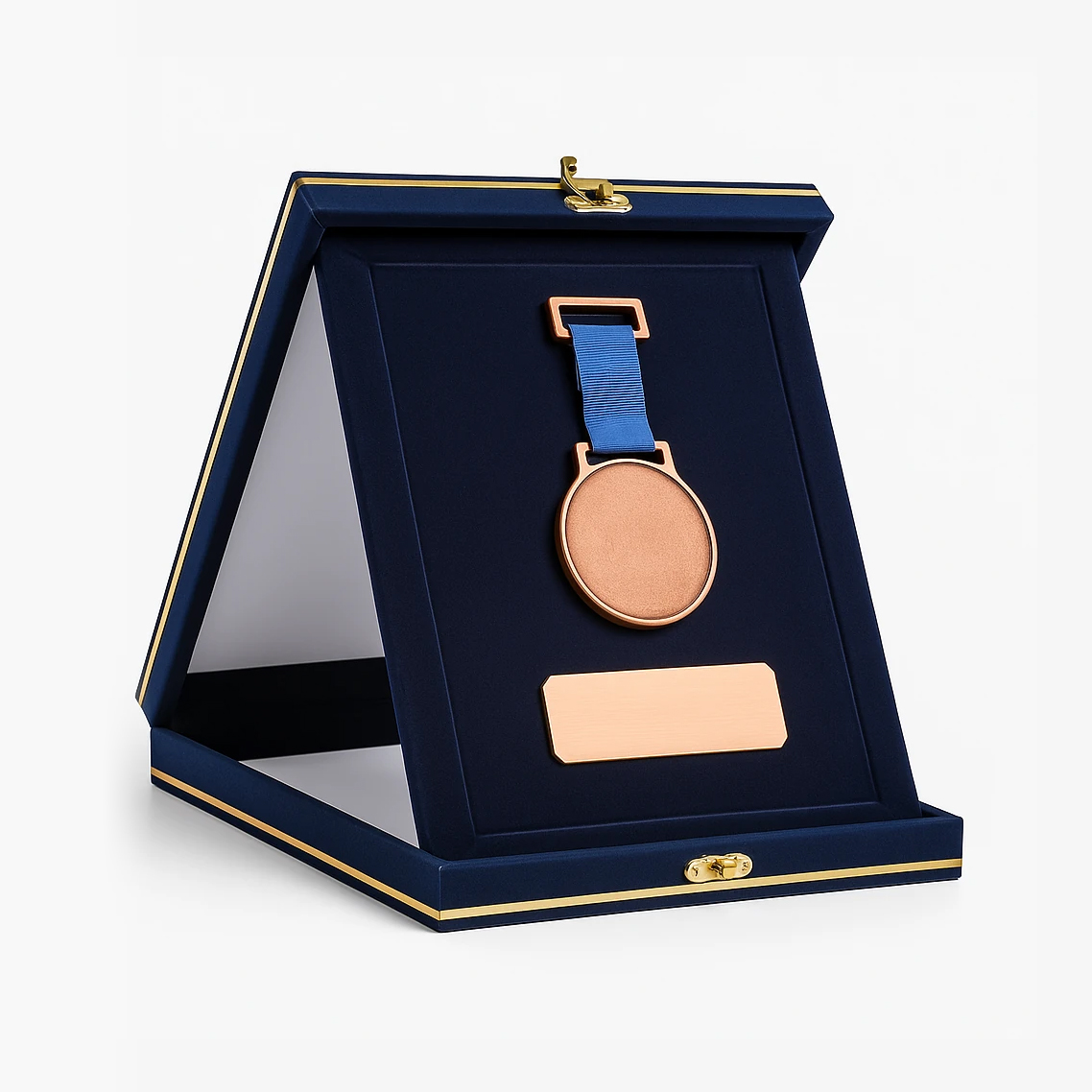 نشان افتخار آروین درون یک جعبه چوبی مستحکم با روکش جیر سرمهای ارائه میشود که جلوهای رسمی، مدیریتی و تشریفاتی به محصول میبخشد. فضای داخلی جعبه با طراحی دقیق، محل قرارگیری مدال فلزی اختصاصی را بهصورت ایمن و کاملاً منظم فراهم کرده است. مدال فلزی دارای پرداخت باکیفیت بوده و به بند و یراق فلزی استاندارد مجهز است که امکان جداسازی مدال از جعبه و نصب مستقیم روی سینه را فراهم میکند. بر روی مدال، قابلیت چاپ نام اختصاصی، عنوان افتخار و لوگوی رویداد یا مجموعه با وضوح بالا وجود دارد. این محصول بهصورت نشان افتخار آماده عرضه میشود و در صورت نیاز، بهعنوان مدال فوری با تحویل اکسپرس ۴۸ ساعته قابل سفارش است.